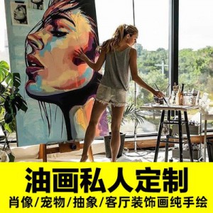 純手繪油畫定制照片人物人像訂制抽象客廳背景墻歐式玄關裝飾掛畫